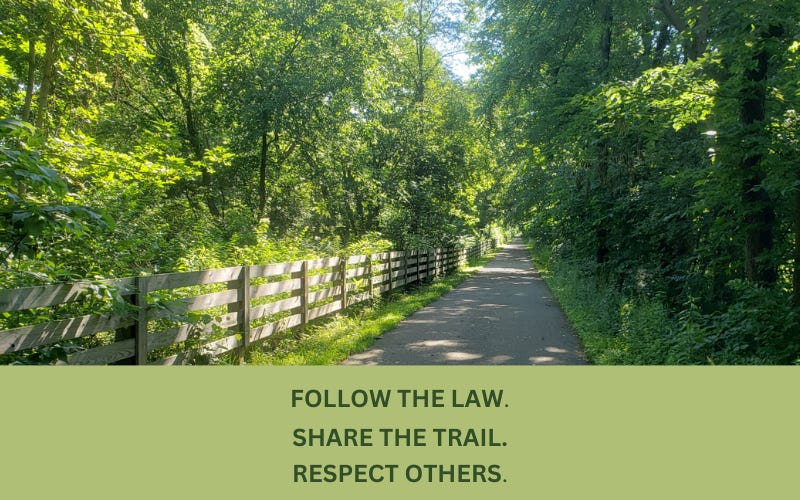 Harmony on the trail depends on e-bike cyclists following the laws that govern the operation of an e-bike. This comes down to common courtesy on the trail. I always remind a person who is in conflict with another trail user that they are on a shared-use path which means we all must share the space and respect others.